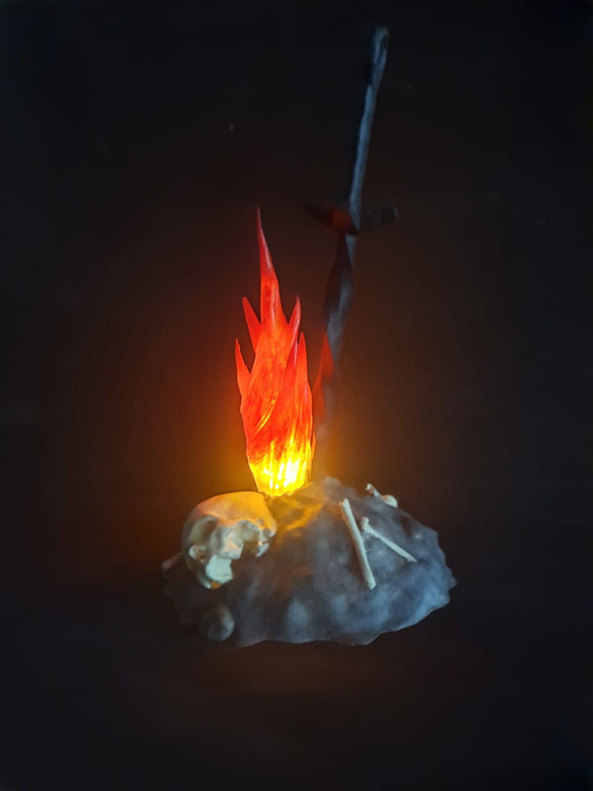 Produto impresso em 3D em resina, pintado a mão, o led acende a bateria então não são necessários cabos ou estar conectado